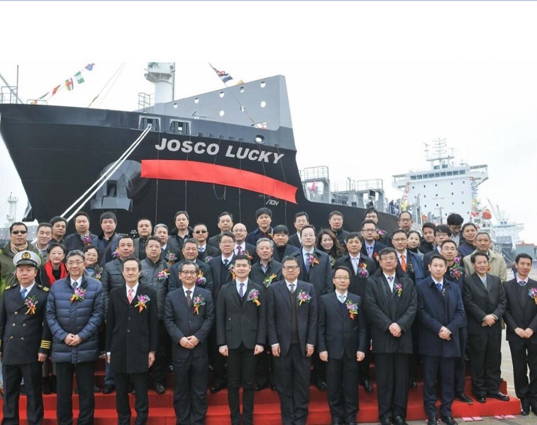 2018年3月8日,江蘇遠洋運輸有限公司通過融資租賃形式投資建造的三艘1900TEU集裝箱船中的首艘“JOSCO LUCKY”輪,在揚子江船業(yè)集團公司舉行了命名交付儀式。江蘇省港口集團黨委副書記、副總經(jīng)理王樹華為新船命名交付致辭,江蘇省港口集團規(guī)劃投資部朱從富部長為新船開啟香檳,江蘇遠洋運輸有限公司總經(jīng)理毛雪強為新船命名。日本海事協(xié)會副會長飯?zhí)餄櫼焕上壬?、日本船級社中國區(qū)總裁成澤平先生、江蘇揚子江船業(yè)集團公司副董事長王建生先生、總經(jīng)理任樂天先生、副總經(jīng)理宋書明先生、副總經(jīng)理兼新?lián)P子總經(jīng)理呂堅煒先生、副總經(jīng)理張濤先生等參加了命名交船儀式。